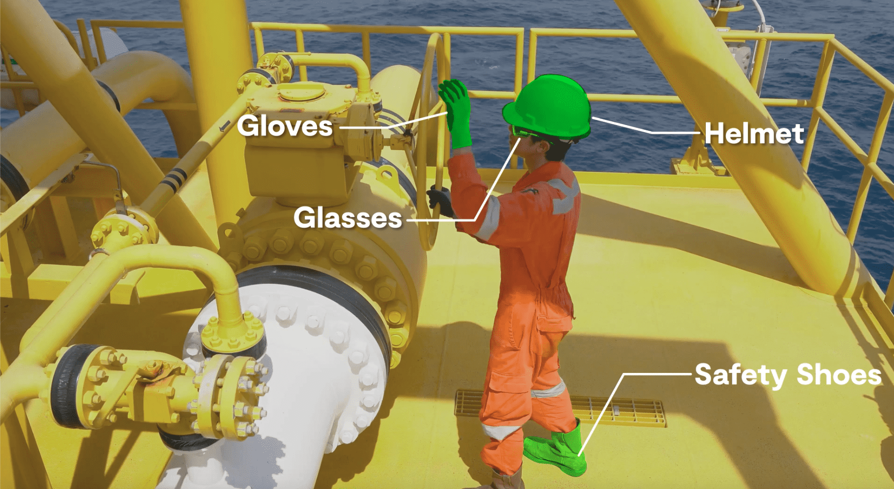 “KP-Safe”, das durch unsere einzigartigen Algorithmen ergänzt wird, die so optimiert sind, dass sie einwandfrei mit Ihren vorgefertigten CCTV-Systemen funktionieren. Ermöglicht eine bessere Kontrolle über unsichere Handlungen, Verhalten gegenüber (PSA) Persönlicher Schutzausrüstung und beweglichen Maschinenteilen.